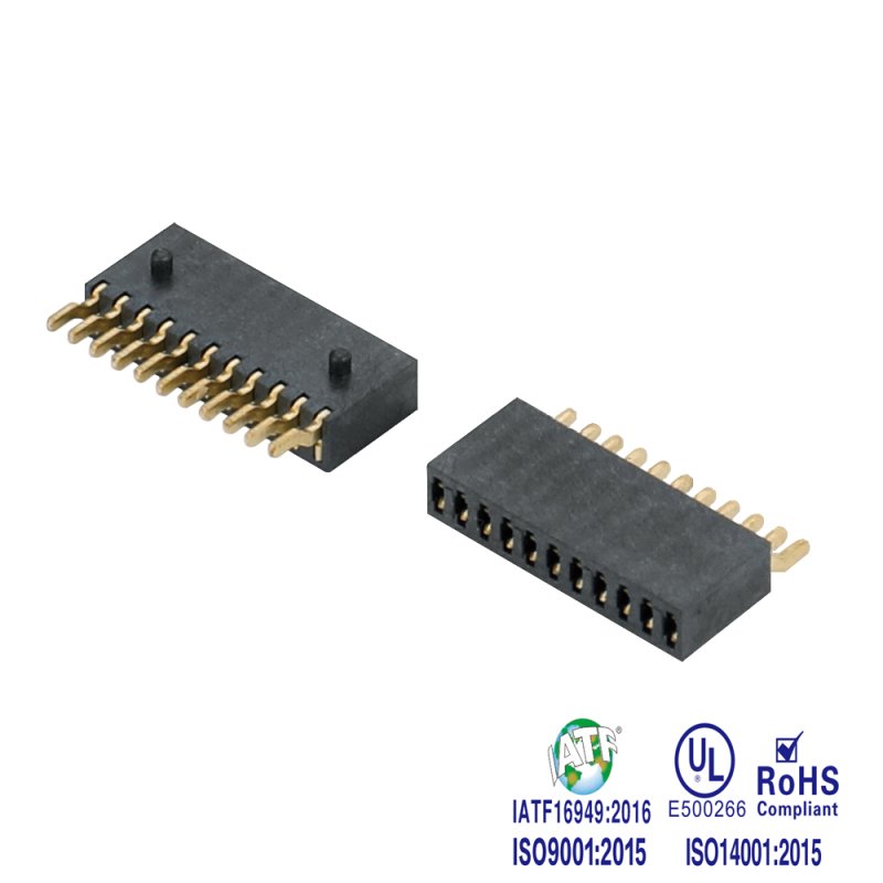 3.分類:根據間距大致可分為0.8mm,1.0mm,1.27mm,2.00mm,2.54mm、3.96mm、5.08mm七類(也可根據需要訂制其它特殊間距);根據排數有單排母,雙排母,三排母,四排母等;根據封裝用法則有貼片SMT,插件DIP(直插/彎插)等;按照安裝方式劃分:180度、90度、SMT;按照是否需要增高,是否需要帶定位柱來劃分,定位柱有2種,一種是內定位柱,一種是耳定位柱;排母端子類型: U端子和Y端子(U型端子,接觸有3個面一般塑高低的用U型端子;Y型端子,接觸有2個面一般塑高高的用Y型端子 )。
